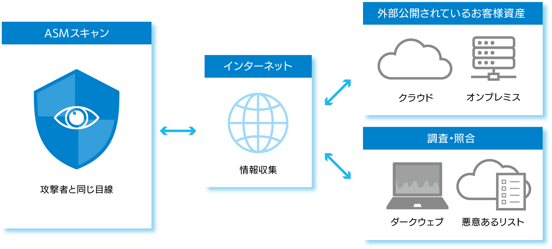 ASM (アタックサーフェスマネジメント)は、インターネット上に公開されている自社のシステムやサービスを外部から調査し、攻撃者の視点でリスクや脆弱性を特定・管理する仕組みです。