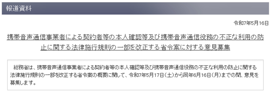 出典:総務省 携帯音声通信事業者による契約者等の本人確認等及び携帯音声通信役務の不正な利用の防止に関する法律施行規則の一部を改正する省令案に対する意見募集