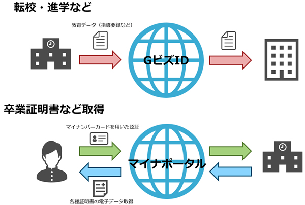 「教育分野の認証基盤」については、新たな専用基盤を構築するのではなく、公共インフラ(Digital Public Infrastructure)利活用の拡大という国の方針を踏まえて、学校同士の教育データの連携時にはG ビズ ID、個人 - 学校間の各種証明書の取得については公的個人認証基盤を利用する方向性が現実的であるとされています。