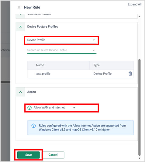 「Client Connectivity Policy」で作成したプロファイルを適用するためのポリシーを作成し、そのまま設定を有効化しました。