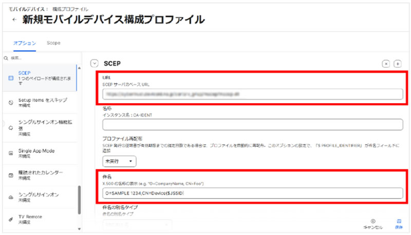 URL: 当社よりご案内する「SCEP オプション接続先 URL」の値を入力します。