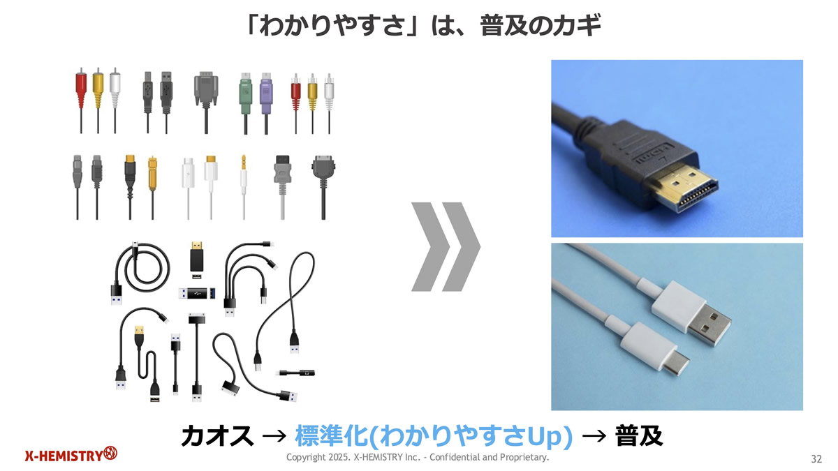 HDMI や USB のように、共通化による「わかりやすさ」を実現する。