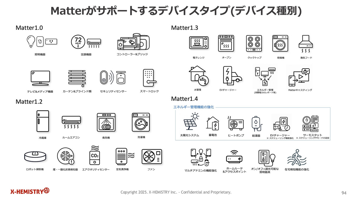 2025 年 11 月にリリースされた最新の「Matter 1.5」では、カメラやエネルギーマネジメントの強化がサポートされた。