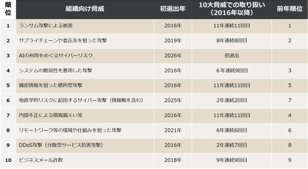 (出典)独立行政法人情報処理推進機構(IPA)「情報セキュリティ 10 大脅威 2026」