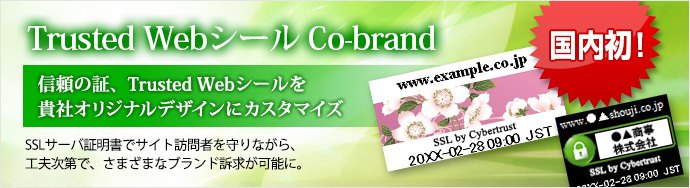 Trusted Web シールは、サイバートラストにより認証された Web サイトであることを証明するものです。Web サイトを訪れるお客様に対し、安全で信頼できるサイトであることをアピールできます。