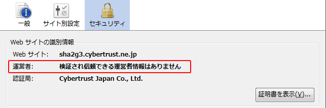 [Firefox]「運営者:検証され信頼できる運営者情報はありません」と表示されます。