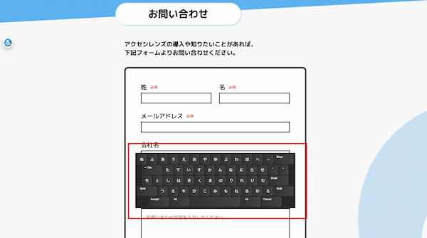 問い合わせ・申込フォーム等を仮想キーボードにより、マウス操作で文字入力する場合に利用します。
