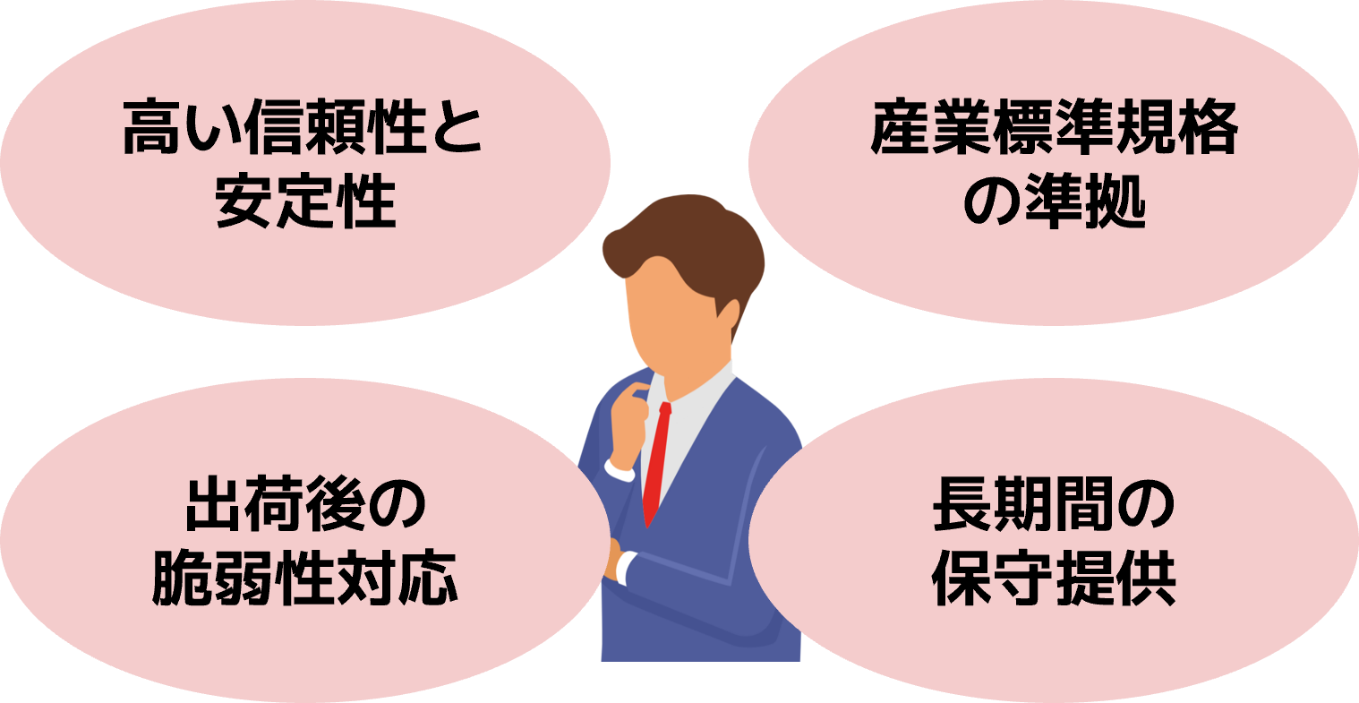日本語による技術サポート、長期運用可能な延長サポート、SBOM 提供