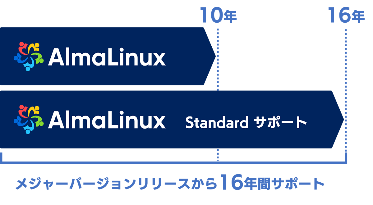 AlmaLinux OS の EOL 後最長 6 年間重大な脆弱性に対してセキュリティ修正を提供します。