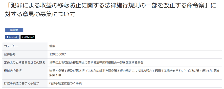 出典:警察庁 「犯罪による収益の移転防止に関する法律施行規則の一部を改正する命令案」に対する意見の募集について