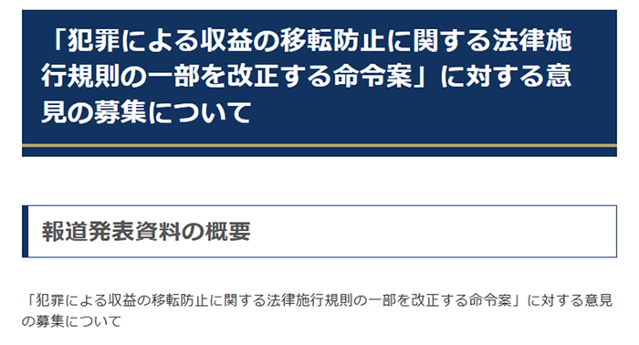 出典:警察庁 「犯罪による収益の移転防止に関する法律施行規則の一部を改正する命令案」に対する意見の募集について