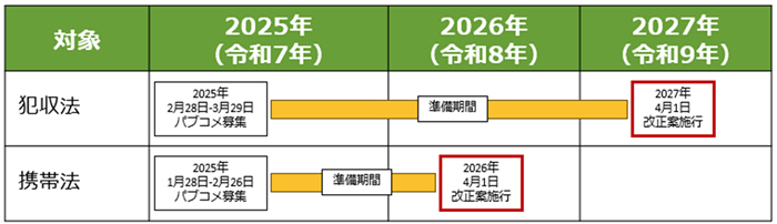 今回の犯収法改正は「2027 年 4 月 1 日から施行」となっているため、携帯法に比べれば若干の猶予があります。