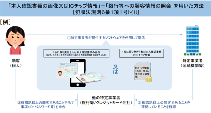- 「本人確認書類の画像または IC チップ情報」+「銀行等への顧客情報の照会」 を用いた方法(該当条項 1 号ト (1))