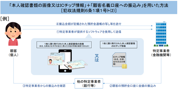 - 「本人確認書類の画像または IC チップ情報」+「顧客名義口座への振込み」 を用いた方法(該当条項 1 号ト (2))