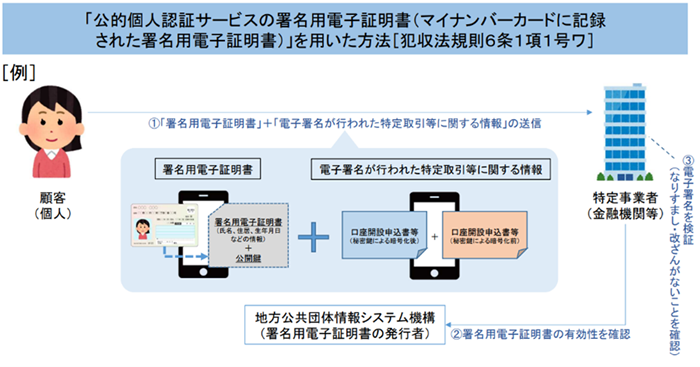- マイナンバーカードに内蔵された署名用電子証明書 ( 公的個人認証 ) を用いた方法(該当条項 1 号ワ)