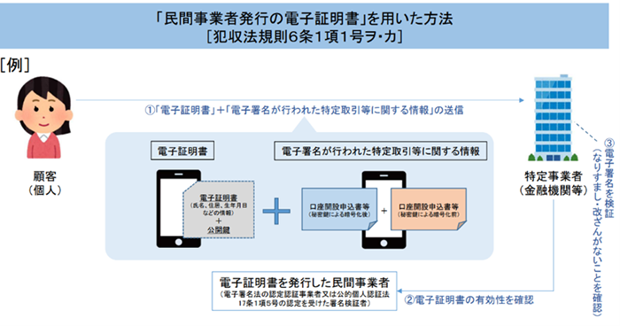 - 民間事業者発行の電子証明書を用いた方法 (該当条項 1 号ヲ・カ)