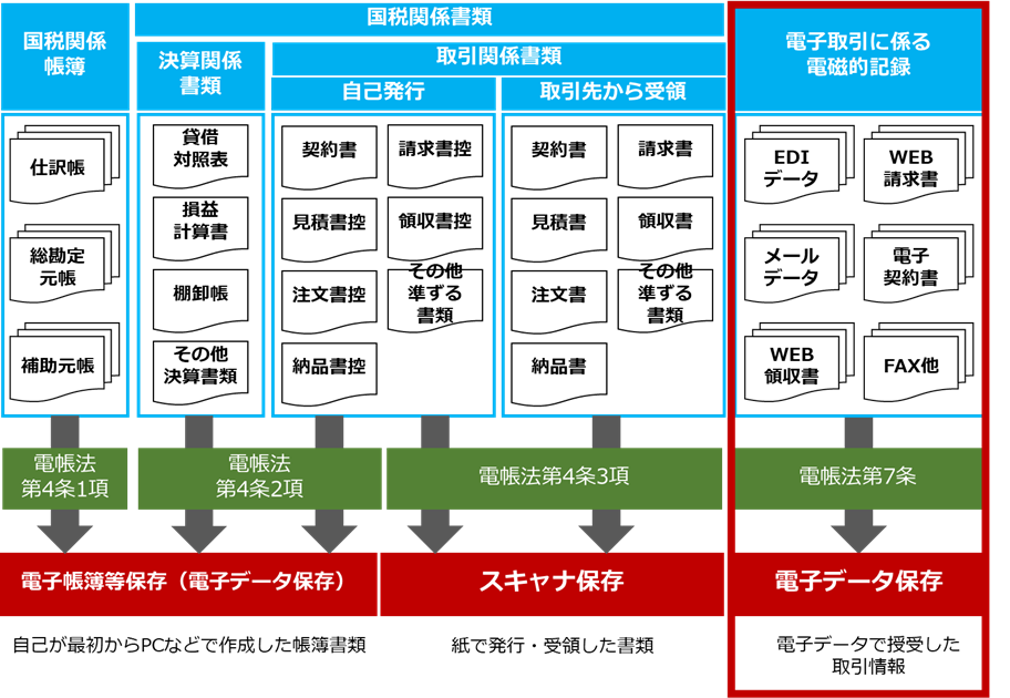 (出典)e-Gov 法令検索|電子計算機を使用して作成する国税関係帳簿書類の保存方法等の特例に関する法律(施行日:令和四年一月一日)