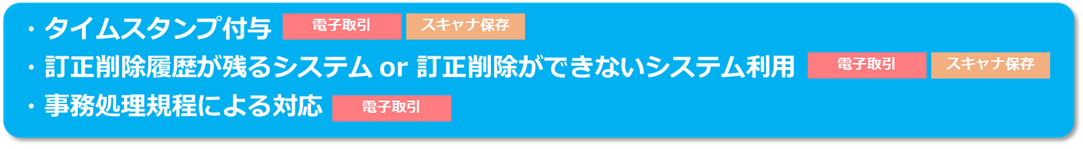 真実性の確保とは、電子データの書類が正しい内容であることを証明するための要件で以下のいずれかの措置を行う必要があります。