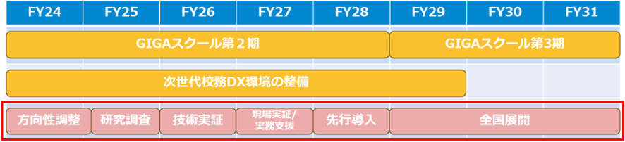 2025 年現在、GIGA スクール第 2 期が進行している最中ですが、デジタル庁主導のもと「教育分野における国の共通認証基盤」の検討が行われており、工程イメージとしては GIGA スクール第 3 期が始まる 2029 年度からの運用開始を想定しています。