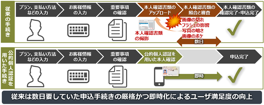 図1:従来の手続き(撮影方式)と公的個人認証を用いた手続きの比較