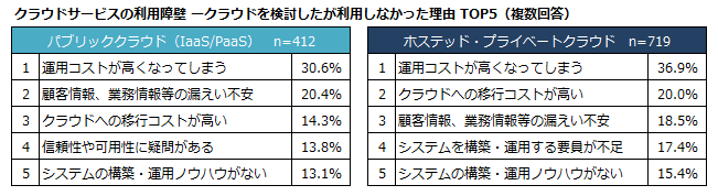 一方クラウド導入の検討において、セキュリティ上の不安を抱える割合が高いという以下のような結果がでています。