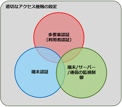 ガイドラインの中でも以下の記載がされており、電子証明書の利用は「強固なアクセス制御」を構成する 3 要素の内 2 要素(多要素認証と端末認証)を満たすことが可能です。