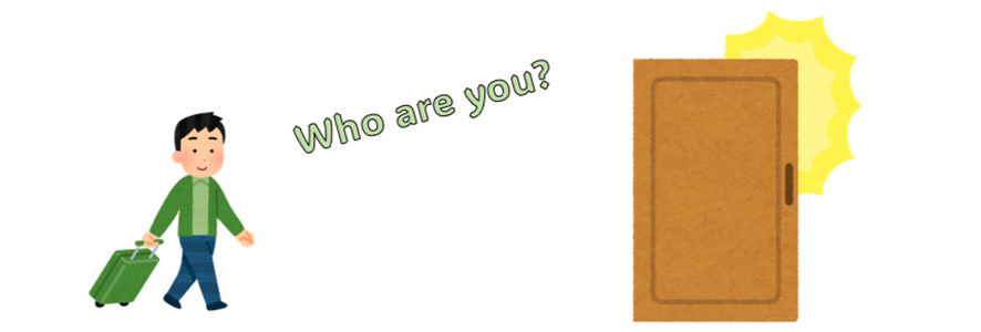 自動受付機にて宿泊費用を支払った上で、指定の部屋へ入室。「料金支払い済み」という状況に基づき入室許可は出るものの、 その 部屋に宿泊する人を特定することはできません。