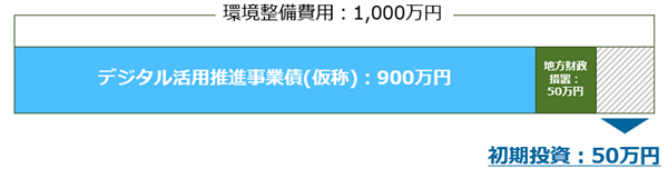 また、2025 年度よりデジタル技術を活用した運営の効率化、課題解決を目的とした「 デジタル活用推進事業債 ( 仮称 )」が創設され、学校の ICT 環境整備の指導者用端末や電子黒板、プロジェクター等については発行対象となる見込みです。例えば、環境整備に 1000 万円を要する場合、90% の 900 万円は本事業債を活用し、残り 100 万円内の 50 万円は地方財政措置の財源が充当できるため、初期投資を抑えることができます。
