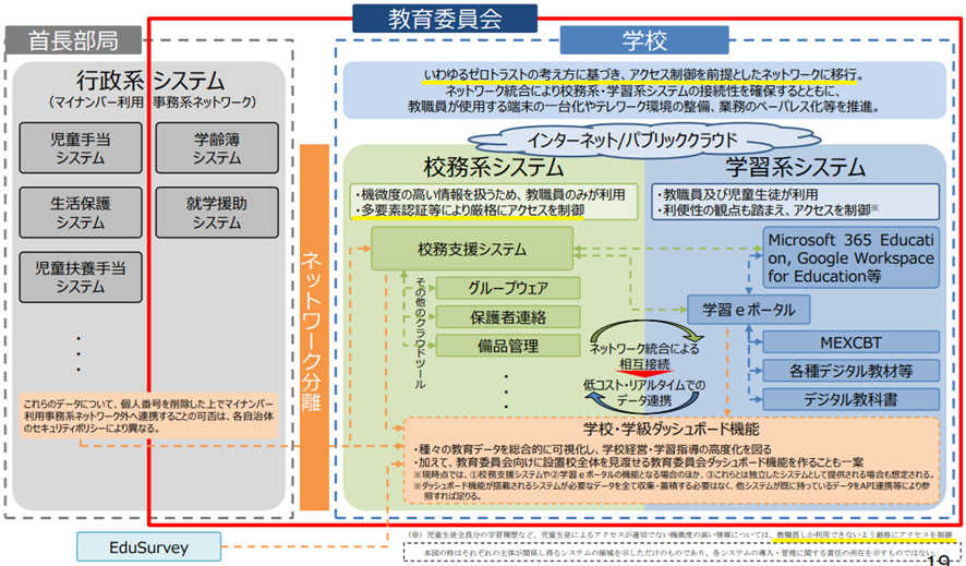 これはクラウド環境の校務支援システムを活用して、ロケーションフリー ※ の働き方や学習系と校務系のデータ連携を容易に行うことにより、教職員の業務効率化などを図ることを目的としています。