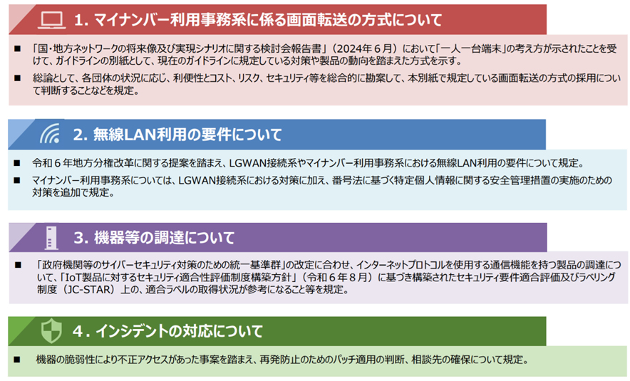 2025 年 3 月 28 日に総務省が公表している「 地方公共団体における情報セキュリティポリシーに関するガイドライン 」が改訂され、大きく以下の点が新たに盛り込まれました。