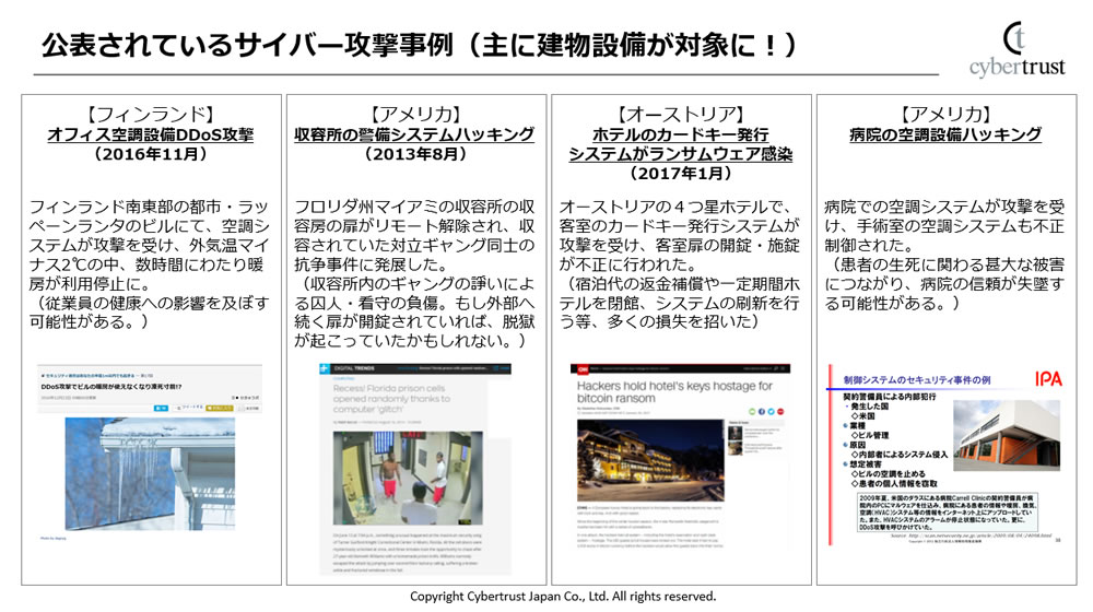 過去に公表されている建物などを対象にしたサイバー攻撃事例を下記に示す。