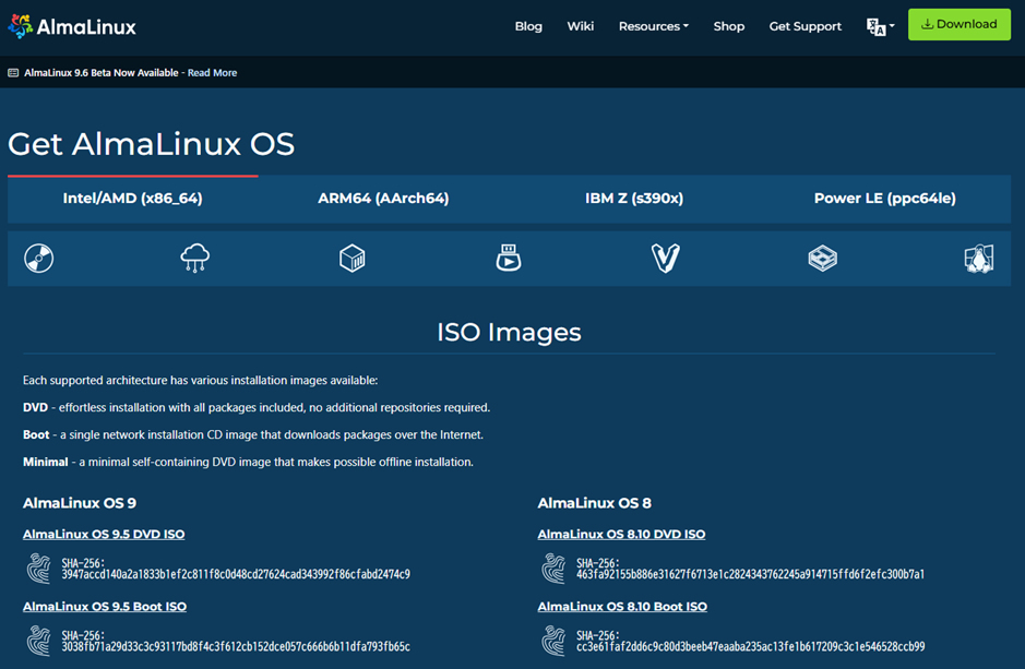 また、AlmaLinux の最新版を利用したいときには、以下のサイトからダウンロードできます。