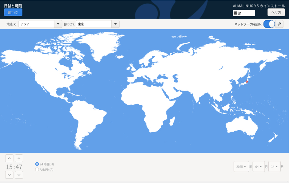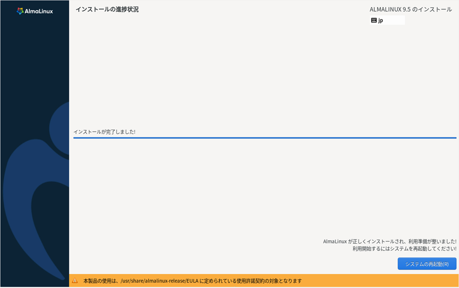画面は、AlmaLinux 9.5 のインストール例になります。