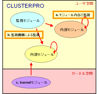 MIRACLE CLUSTERPRO では図 2 のように、以下の自己監視機能があります。