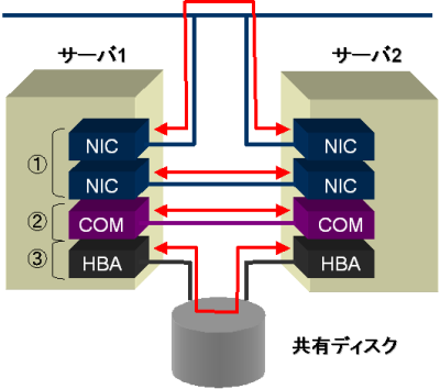 複数のハートビートを使用することで、単一デバイスの故障によるサーバーダウンと断線の誤認といった事象を防いでいます。