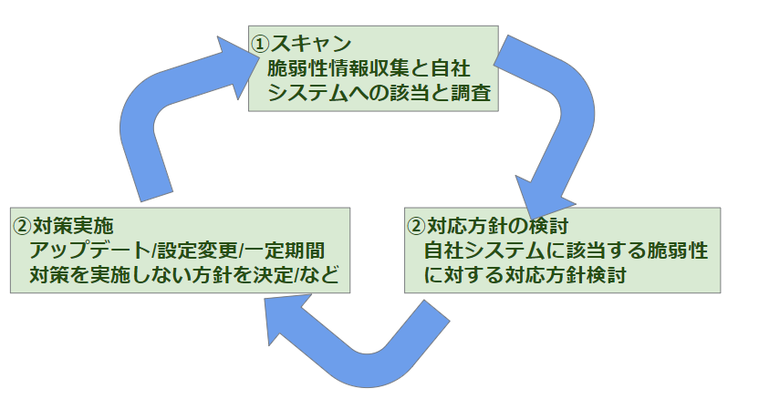 - スキャン ( 情報収集と自社システムへの該当調査 )