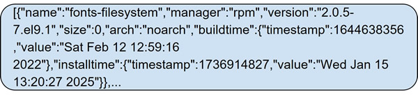 - system.sw.packages.get の出力をパースし、脆弱性管理システムに沿ったフォーマットに整形する処理
