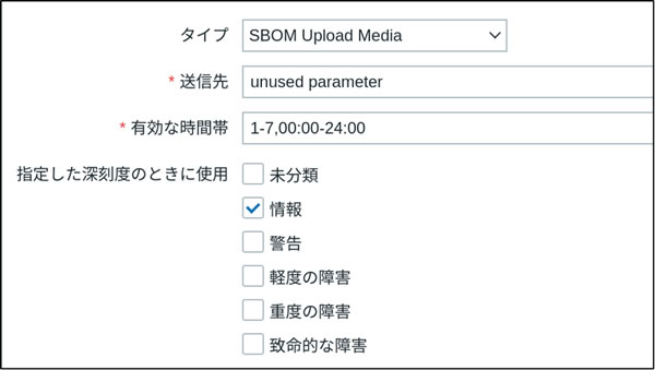 名前 : 任意の名称(例 : SBOM Upload Media)