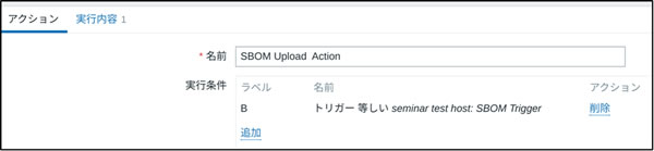 名前 : 任意の名称(例 : SBOM Upload Action)