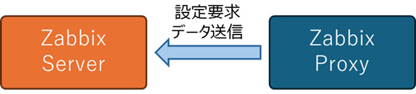 監視設定情報等は、Zabbix Server が起点となって Zabbix Proxy に配信します。