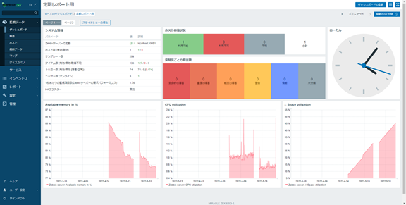 Zabbix 5.4 から定期レポート機能が追加されました。MIRACLE ZBX では 6.0 から本機能が利用できます。この機能は Web フロントエンドで確認できるダッシュボードのスクリーンショットを PDF としてメールで配信するものです。ダッシュボードを新たに作成、カスタマイズすることで必要な情報をレポートとして配信できます。Web フロントエンドにアクセス出来ない場合でも、監視対象の状況を定期的に確認するといった使い方ができるでしょう。本記事では、MIRACLE ZBX を使った定期レポート機能の設定方法について紹介します。