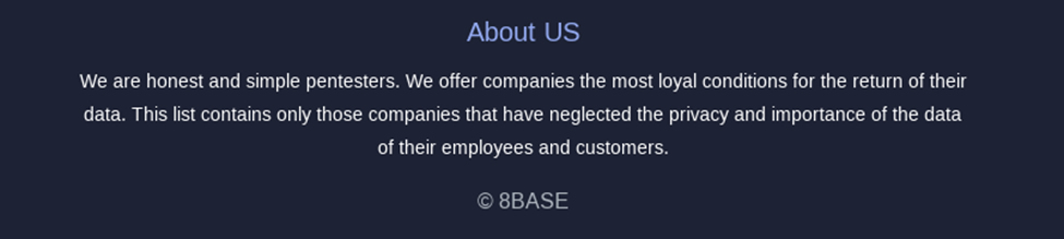 漏洩サイトでは⾃らを「正直で単純なペネトレーションテスター」であると称しており、従業員や顧客のデータのプライバシーと重要性を軽視している企業のみをターゲットにしている と主張しています。