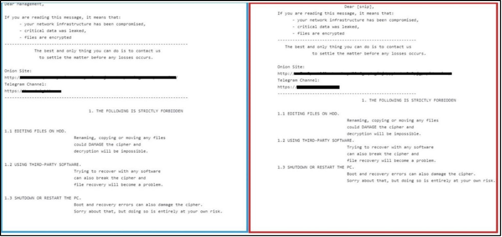 (画像は「HC3 Analyst Note: 8Base Ransomware」より転載。左が 8Base、右が RansomHouse)