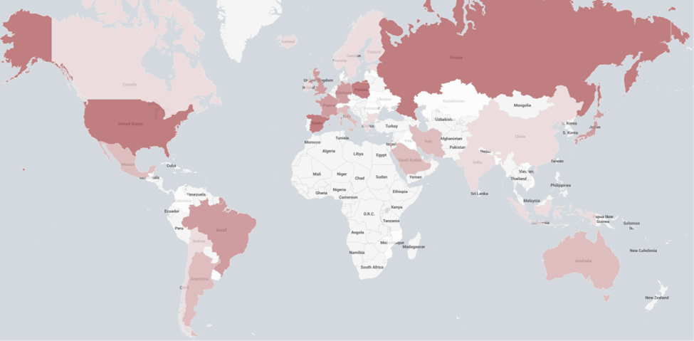 この範囲だけで眺めてみるとヨーロッパや米国など反ロシアの国々をメインに DDoS が行われているように見えます。中国は元々ロシアとは「右手で握手して左手で銃を突きつけあってる」ような間柄ですので、ロシアによる攻撃対象に含まれている可能性があります。