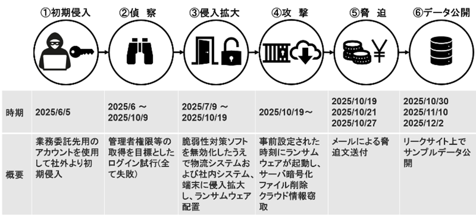 | 2025/10/22 | ASKUL サイトにて情報開示。ランサムウェア感染によるシステム障害発生のお知らせとお詫び(第2報) | ASKUL サイト |