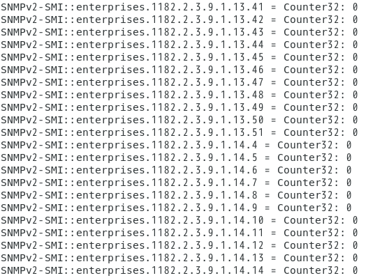 $ snmpwalk -v 1 -c public 192.168.100.1 .1.3.6.1.4.1.1182.2.1.4