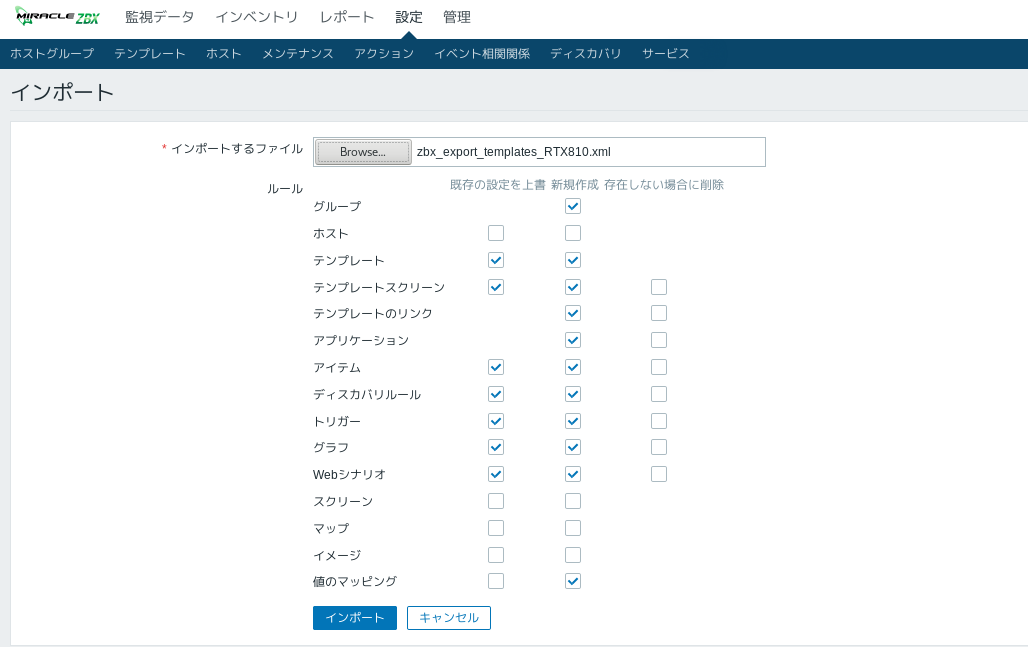 今回の記事では「MIRACLE ZBX」がインストールされている前提でお話を進めていきます。