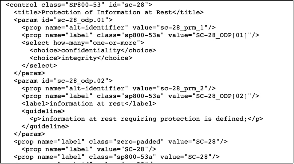 - 一般的な OSCAL コンテンツのサンプルはこちらにあります Annotated Example - NIST SP 800-53 Revision 5 Control。
