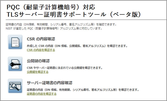 「PQC(耐量子計算機暗号)対応 TLS サーバー証明書 サポートツール(ベータ版)」