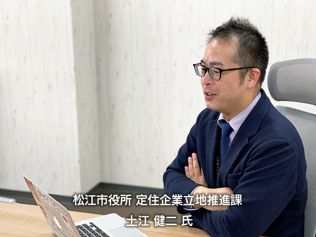 松江市で定住企業立地推進課の副主任を務める土江健二氏は、「製造業を誘致するといっても、補助金合戦では大きな都市に負けてしまいます。そこで着目したのが Ruby を開発した、まつもとゆきひろ氏の存在でした。松江市在住ということで市の担当者がお目にかかり、まつもと氏のご協力のもと、2006 年に Ruby City MATSUE プロジェクトが立ち上がりました。プロジェクトは約 15 年をかけて徐々に浸透し、サテライトオフィスの誘致の成果として現在までに約 40 社に都市部から来てもらうことになりました」と語る。